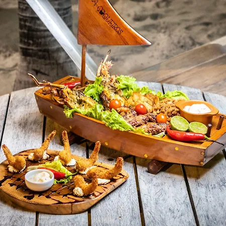 Um pequeno-almoço tropical é oferecido com frutas tropicais, carne fria e panquecas. Vila Coqueiros é um restaurante à la carte restaurant no local, que serve os pratos da cozinha vegetarische. Para tomar uma bebida pode parar no bar da piscina dinâmico.